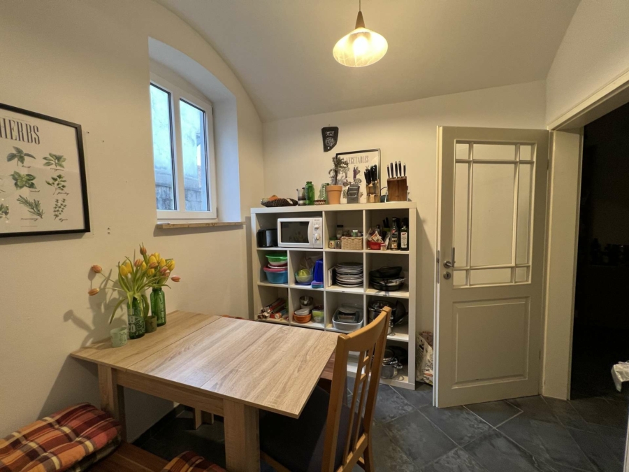Ein wunderschöner Sandsteingewölbekeller rundet das reizvolle Ambiente der ehemaligen Fachwerkremise ab.