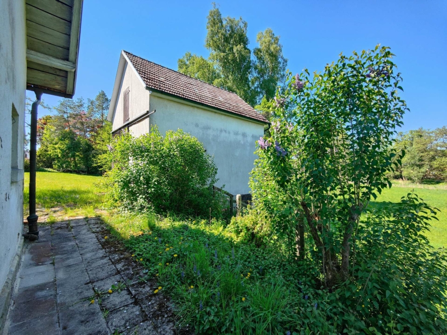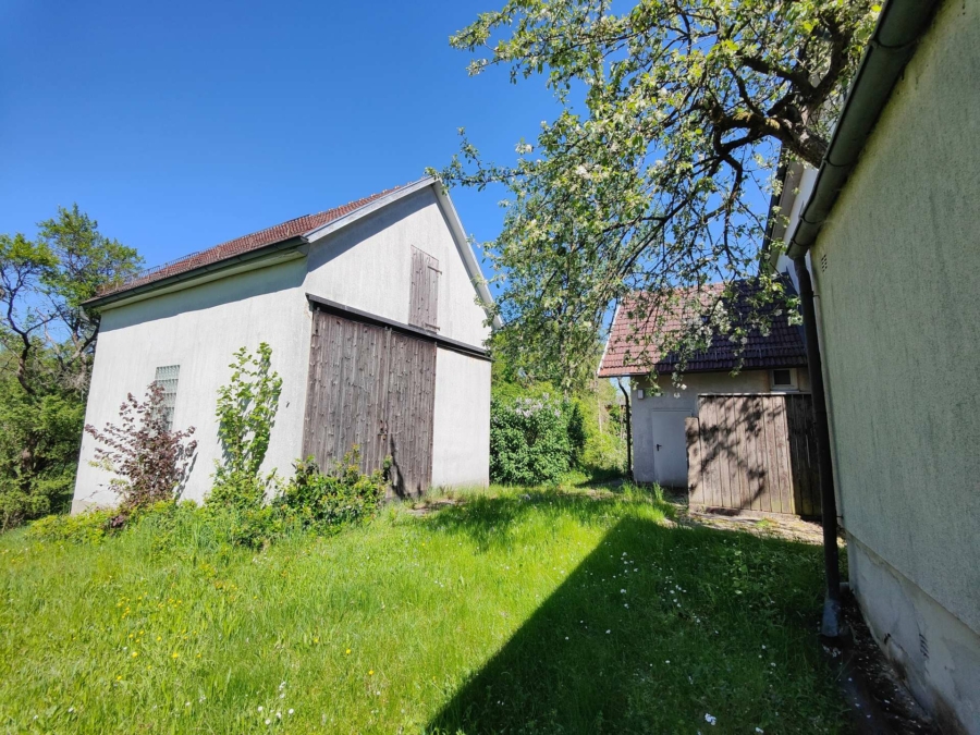 Zum Haus gehören außerdem eine Garage (erbaut 1970), eine Scheune sowie ein weiterer, in den Hang hineingebauter Gewölbekeller. Das große, um Haus und Scheune herum relativ ebene Grundstück geht nach hinten in einen Hang über.