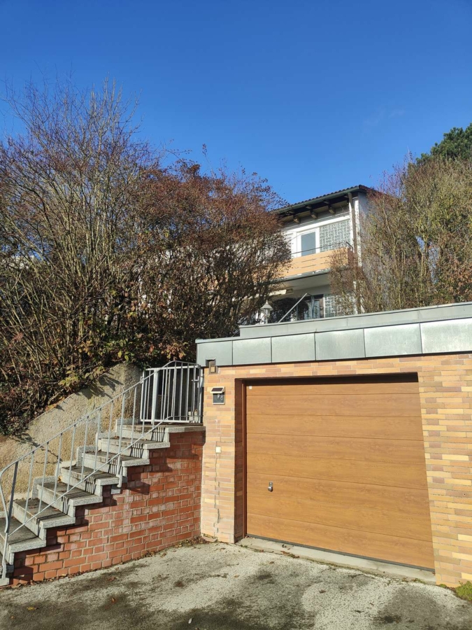 Die zum Haus gehörende Garage befindet sich unterhalb auf Strassenebene. Als zusätzlicher Stellplatz kann hier der Bereich vor der Garage genutzt werden.