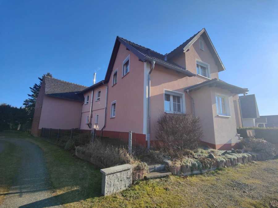 Dieses Wohnhaus mit Einliegerbereich im Erdgeschoss und großem Garten befindet sich im Ortsteil Heubisch in der Gemeinde Föritztal. Ursprünglich gedacht für zwei Generationen, kann es selbstverständlich auch "nur" als Einfamilienhaus genutzt werden. Ursprünglich um 1900 erbaut, wurde es 1958 aufgestockt und im Jahr 2011 um einen Anbau erweitert und so "in seine heutige Form gebracht".