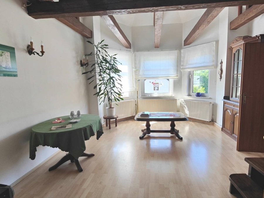 Im Obergeschoss hat man von der Diele aus Zutritt zum Wohnzimmer mit toller Galerie und Dachzimmer. Außerdem gibt es auf dieser Etage die Küche mit Essplatz, ein geräumiges Schlafzimmer, zwei weitere Zimmer, ein Badezimmer mit Dusche, Badewanne und ein WC.