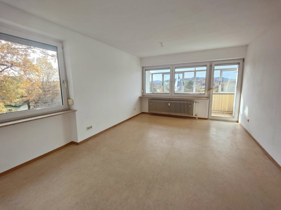 - Wohn-Esszimmer mit Ausgang auf den teilverglasten Balkon