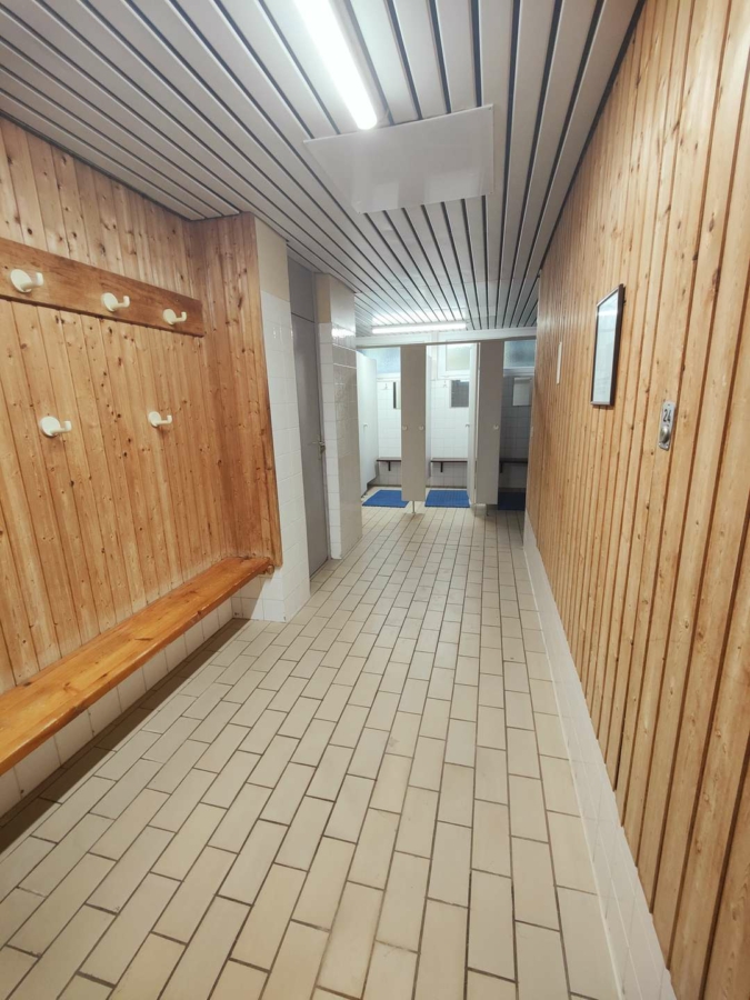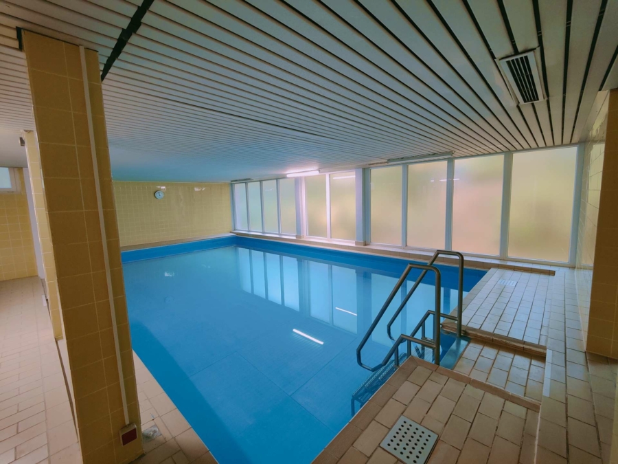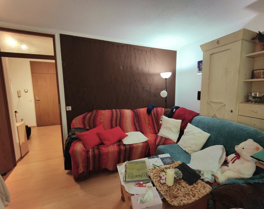 Die Wohnfläche von ca. 60 m² teilt sich auf in Flur mit Garderobe, ein großes und helles Wohnzimmer mit Ausgang zur Loggia, Küche, Bad mit Badewanne sowie Schlafzimmer und Abstellraum. Das ehemalige Gäste-WC wurde zu einem Waschmaschinenraum "umgewandelt". Im Untergeschoss steht aber für alle Bewohner auch ein Waschkeller mit Münzautomaten zur Verfügung. Der ebenfalls allen Bewohnern zur Nutzung verfügbare "Wellnessbereich" umfasst Pool, Sauna und einen kleinen Fitnessbereich.