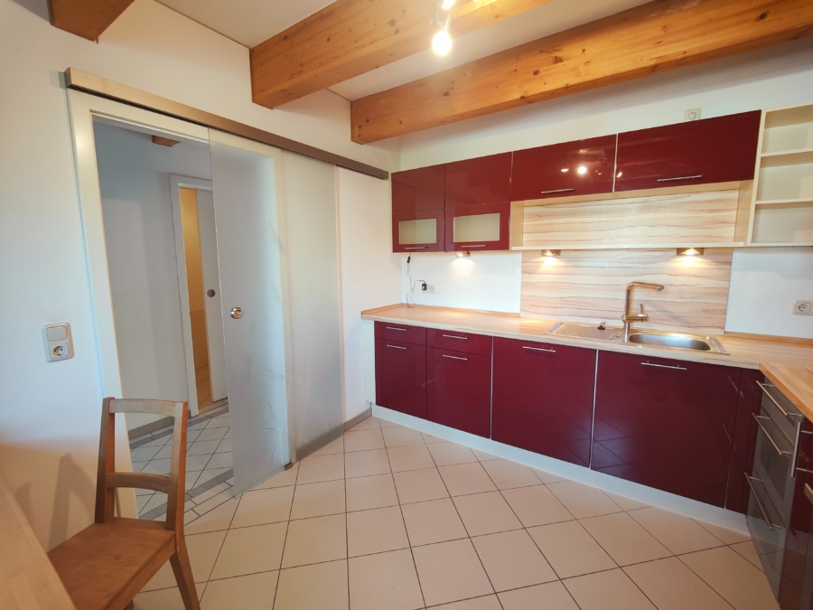 Im Detail verfügt sie im unteren Geschoss über eine Küche (mit schöner Einbauküche), das großzügige Wohn-und Esszimmer mit neuwertigem Pellets-Kaminofen und einer großen, nach Süden ausgerichteten Sonnenterrasse (tatsächliche Fläche 33 m², angerechnet zu 25 %) Diese erreicht man über eine breite Schiebetür und man kann so den Übergang vom Innen- zum Außenbereich genießen. Zusätzlich haben wir auf dieser Ebene ein Duschbad und einen Abstellraum.