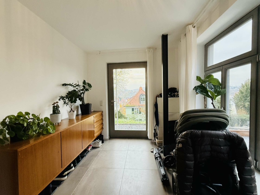 - den Ausgangsbereich zur angegliederten, herrlich großzügigen Terrassenfläche – der "Wintergartenfeeling" ausstrahlt.