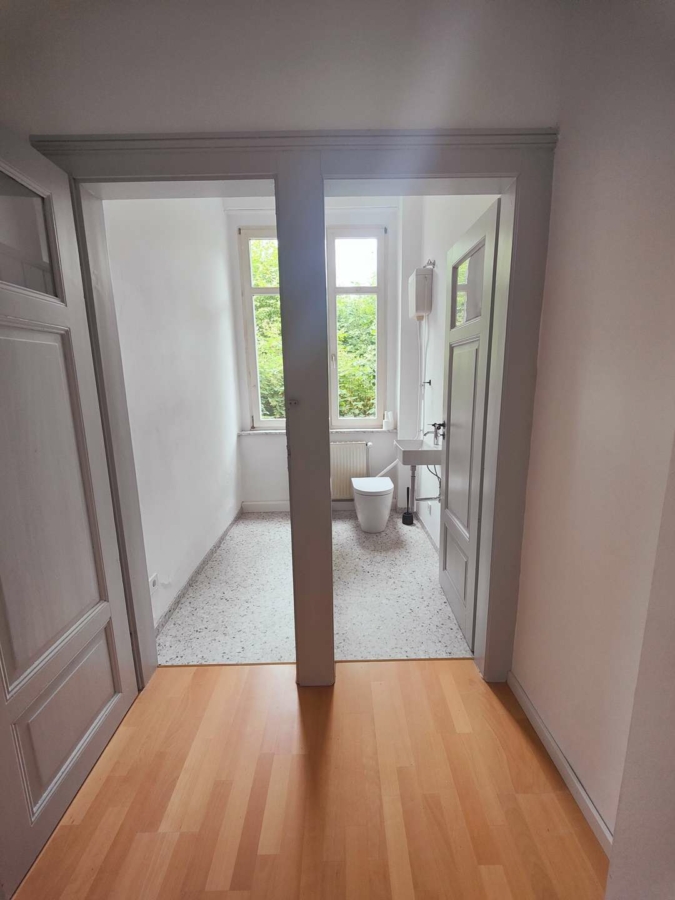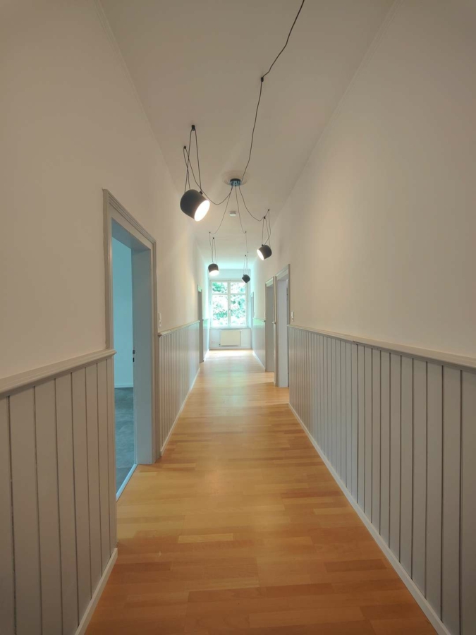 Sie wurde nach Auszug der Mieter aktuell saniert. Hohe Decken, originale Türen und die Lamperie im Flur vermitteln die wunderschöne Atmosphäre eines historischen Altbaus.