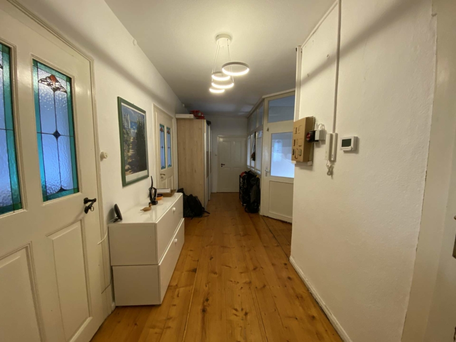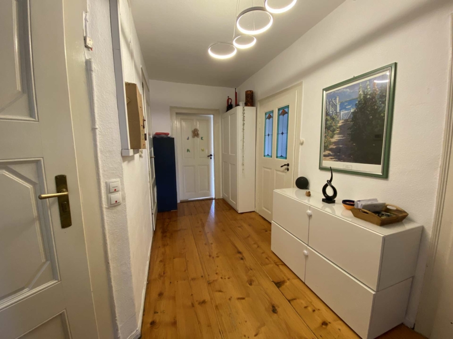 Das geräumige Wohnzimmer überzeugt durch seine freundliche Atmosphäre. Das Schlafzimmer bietet Zugang zu einem nostalgischen, kleinen Wintergartenzimmer – ein idealer Rückzugsort mit besonderem Flair. Ein weiteres Zimmer eignet sich hervorragend als Kinder- oder Arbeitszimmer und verfügt über eine angrenzende, helle Kammer mit Tageslicht – perfekt als Stauraum für Kleidung, Spielzeug oder Homeoffice-Bedarf.