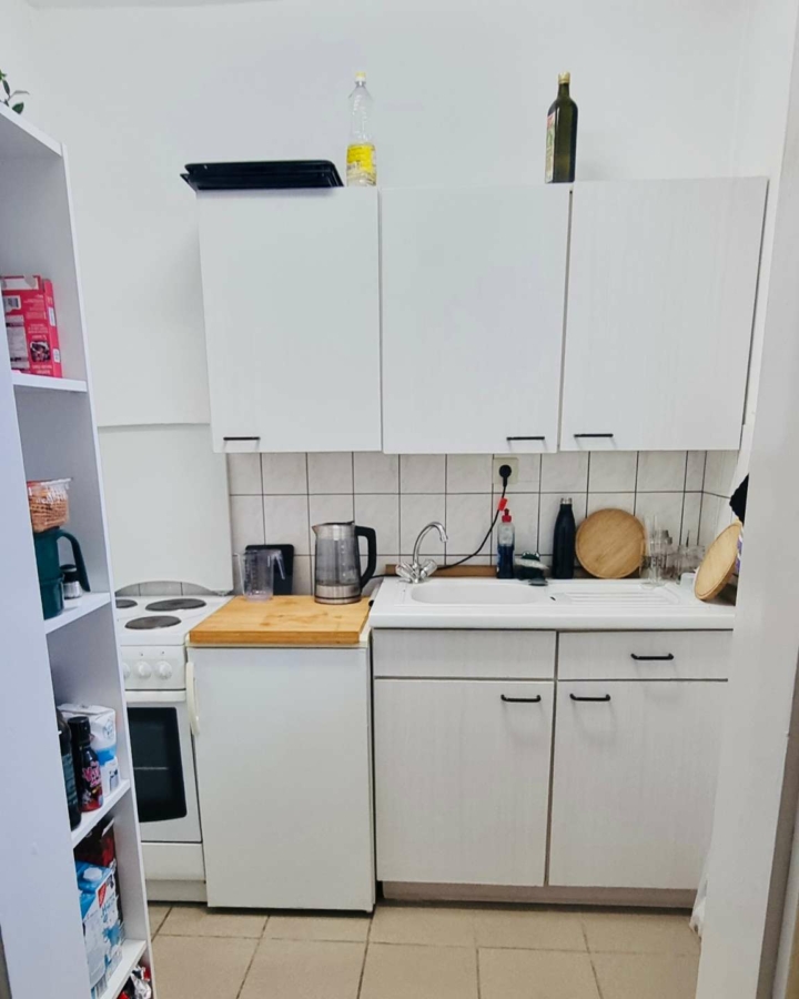 Die Aufteilung ist wie folgt: Eingang, Flur mit Garderobe, Bad mit Dusche, WC, Küche mit Einbauküche, heller Wohn- und Schlafraum mit sonnigem Ausblick.